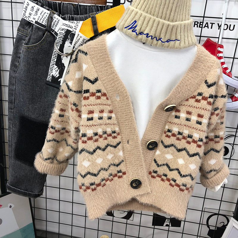 宝宝开衫外套男童女童针织衫秋冬季洋气水貂绒毛衣儿童毛线衣韩版