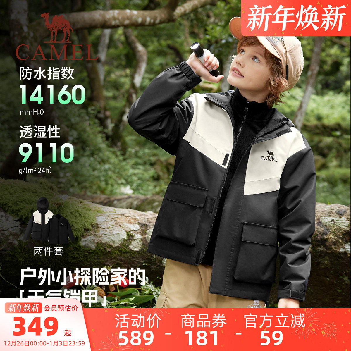 骆驼儿童冲锋衣三合一新款中大童户外防水风衣女童外套男童滑雪服