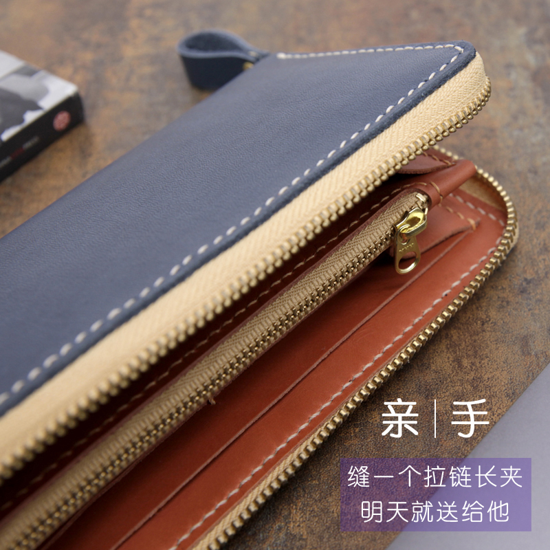 手工钱包diy材料包拉链长夹多卡位简约商务大容量手拿包圣诞礼物