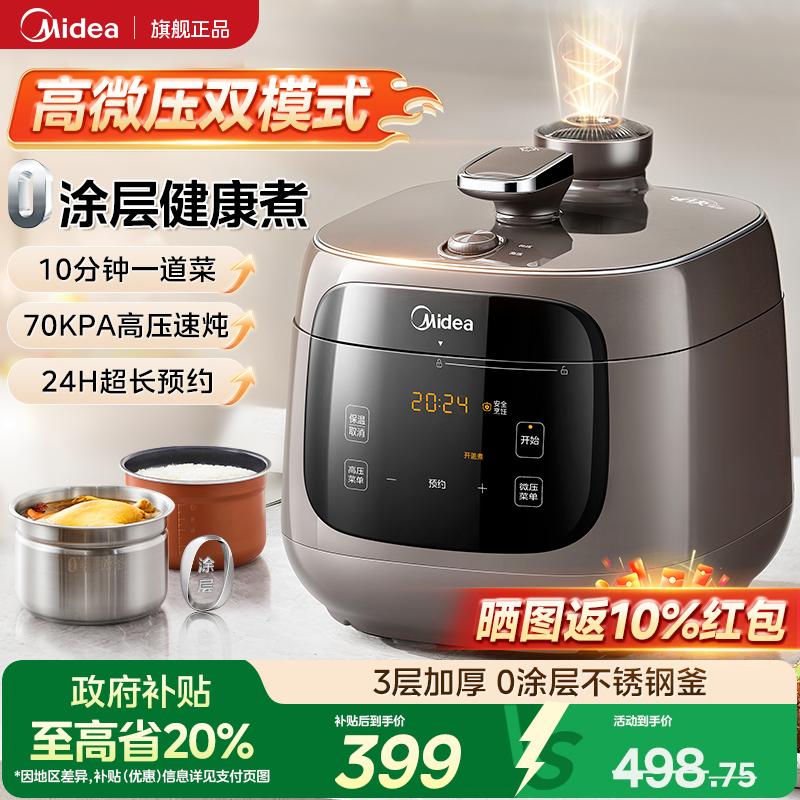 美的电压力锅家用高压锅0涂层0氟双胆高压电饭煲官方正品2026新款