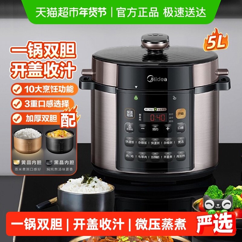 美的电压力锅家用双胆高压锅5升内胆多功能饭煲全自动智能6人正品