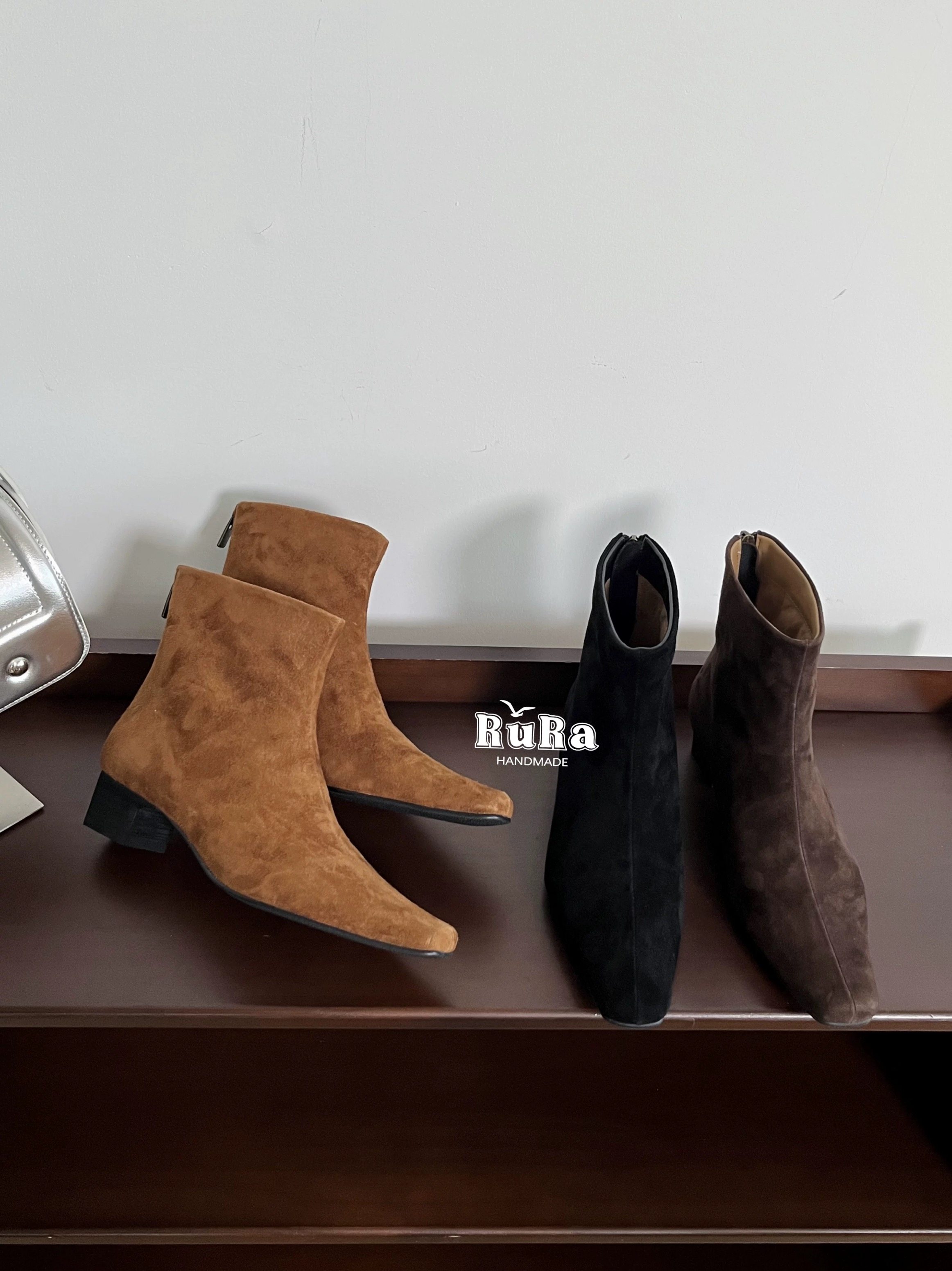 rura法式复古小众设计西部牛仔靴女2025秋冬新款粗跟中筒靴瘦瘦靴
