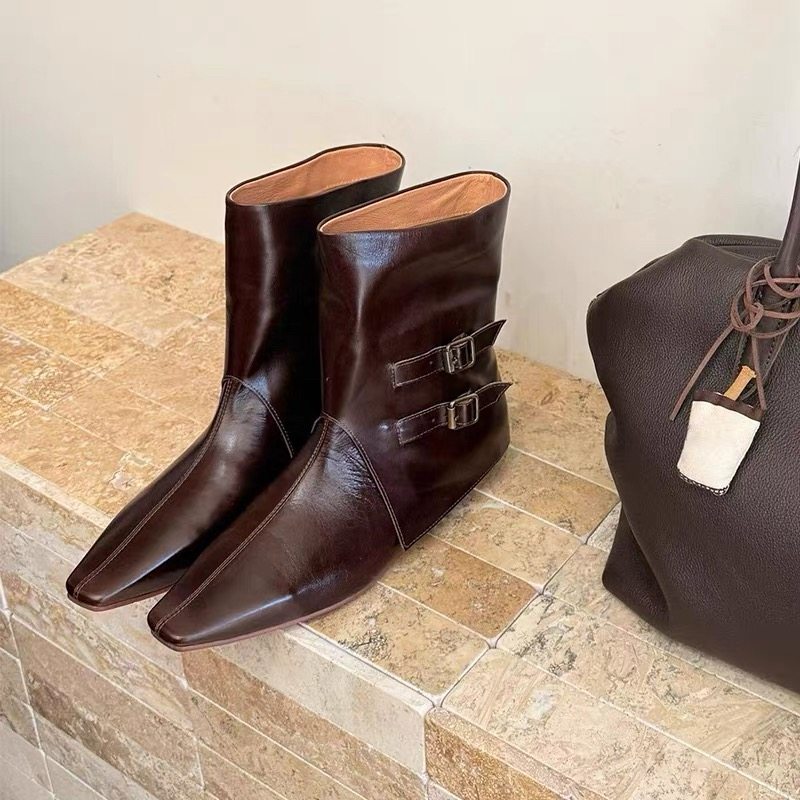 复古小短靴女秋冬新款软底靴子文艺平底女鞋及裸靴百搭英伦马丁靴