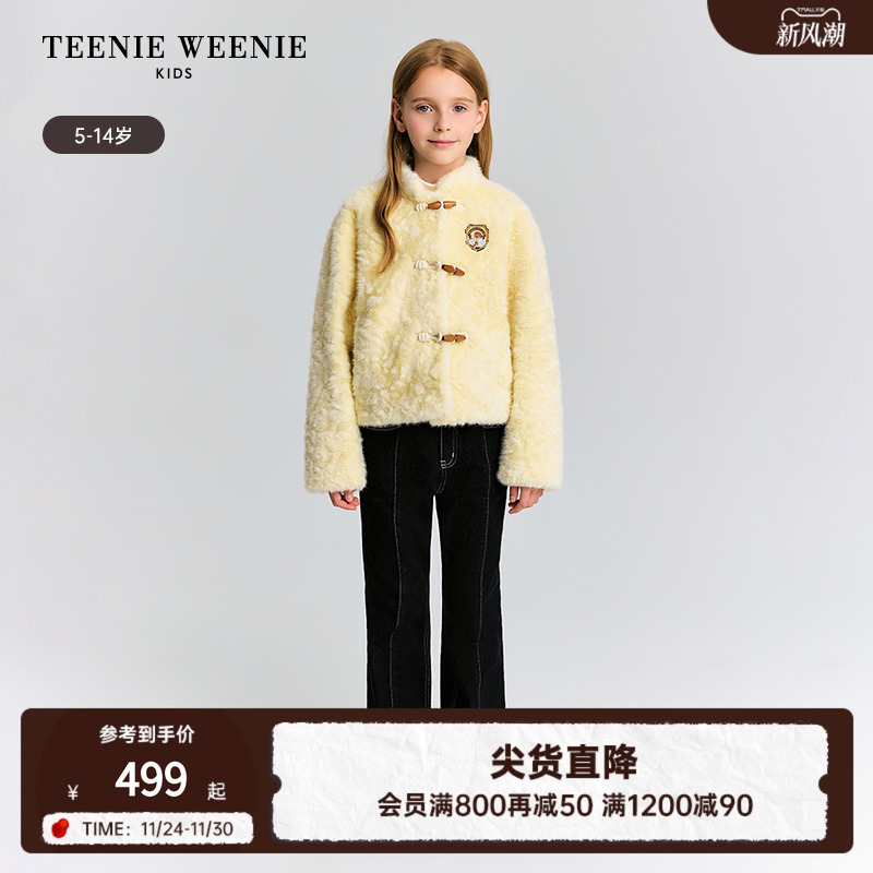 TeenieWeenie Kids小熊童装25年新款秋冬女童复古时尚仿皮草外套
