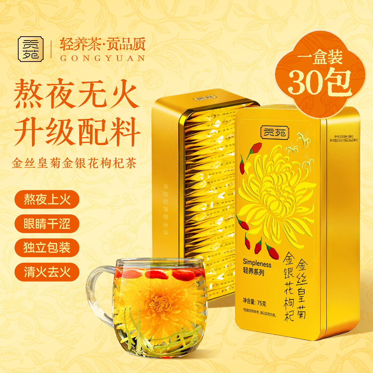 贡苑菊花枸杞茶金银花金丝皇菊熬夜养生去火降清花茶热官方旗舰店