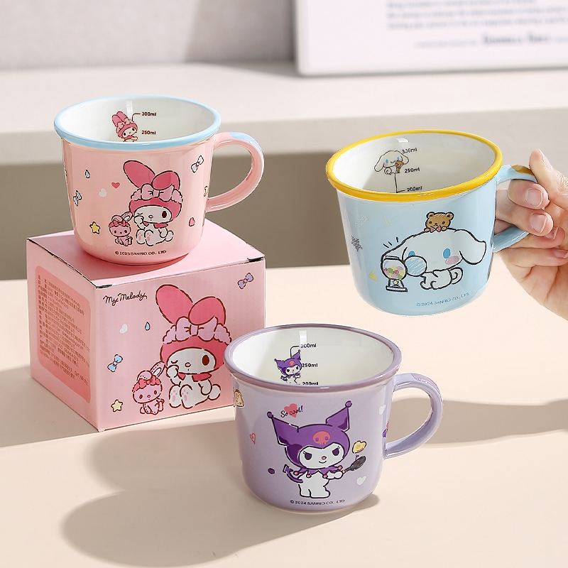 三丽鸥儿童水杯家用女孩陶瓷杯带盖带勺马克杯刻度牛奶杯子喝水用
