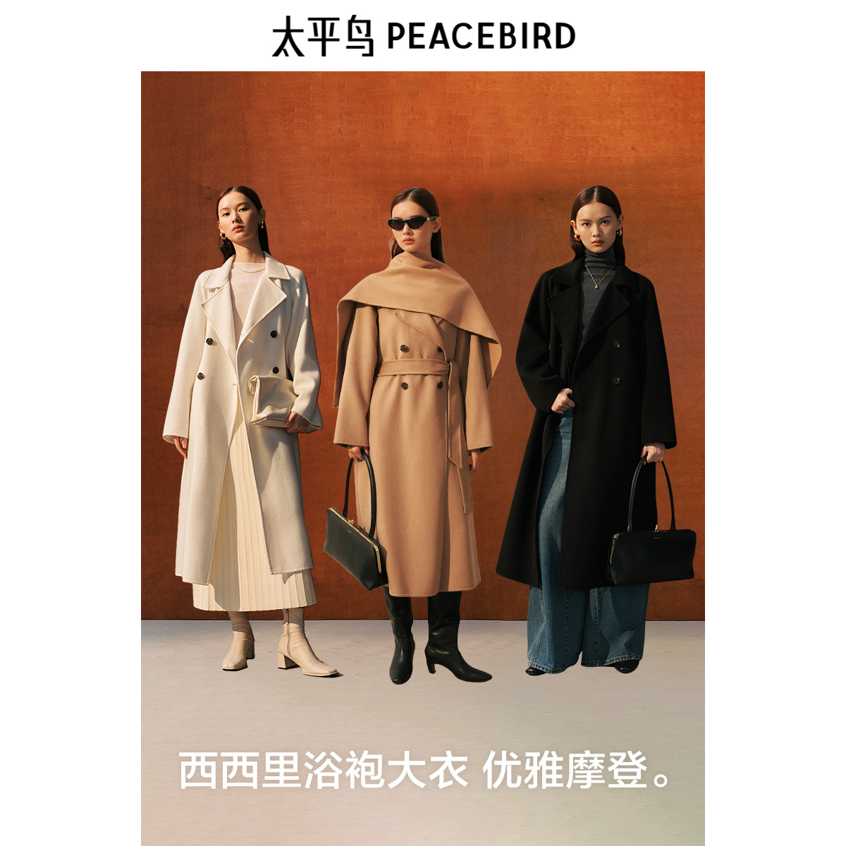 太平鸟大师甄绒系列浴袍式2.0羊绒大衣女25新款双面毛呢外套*