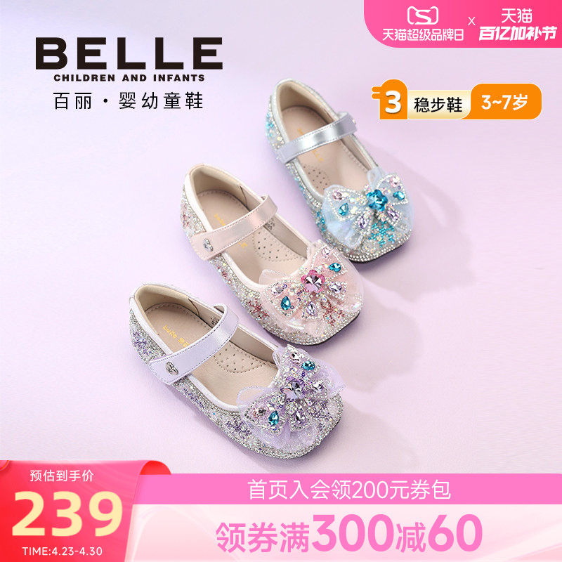 百丽童鞋女童水晶公主鞋春季洋气水钻软底皮鞋儿童时尚单鞋宝宝鞋