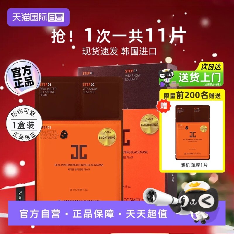 【自营】JAYJUN韩国捷俊黑色水光三部曲熬夜面膜补水保湿清洁修护