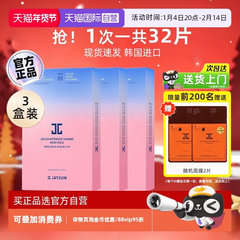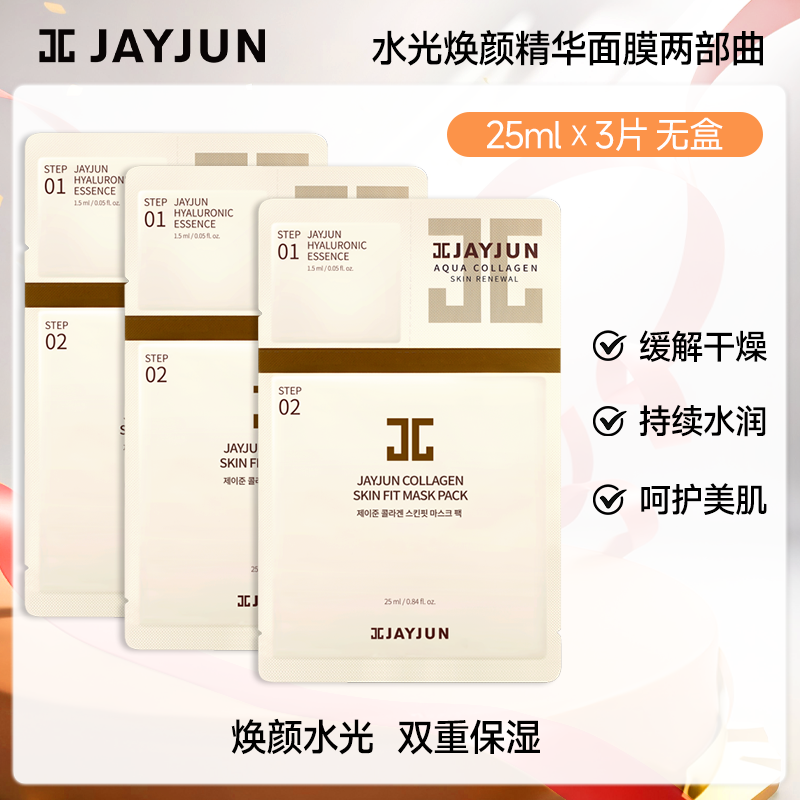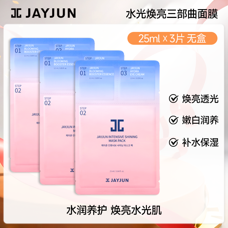 【新客体验】jayjun捷俊水光焕亮三部曲面膜补水面膜3片韩国进口