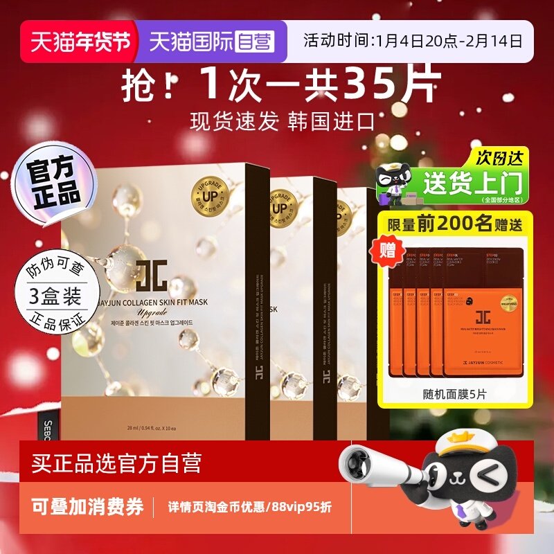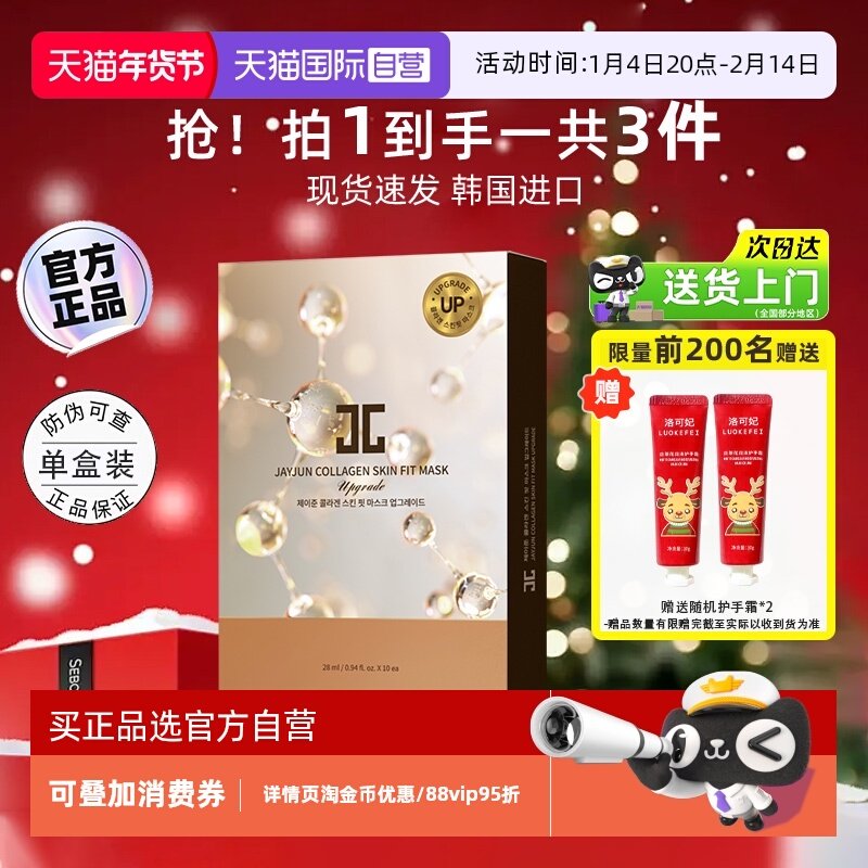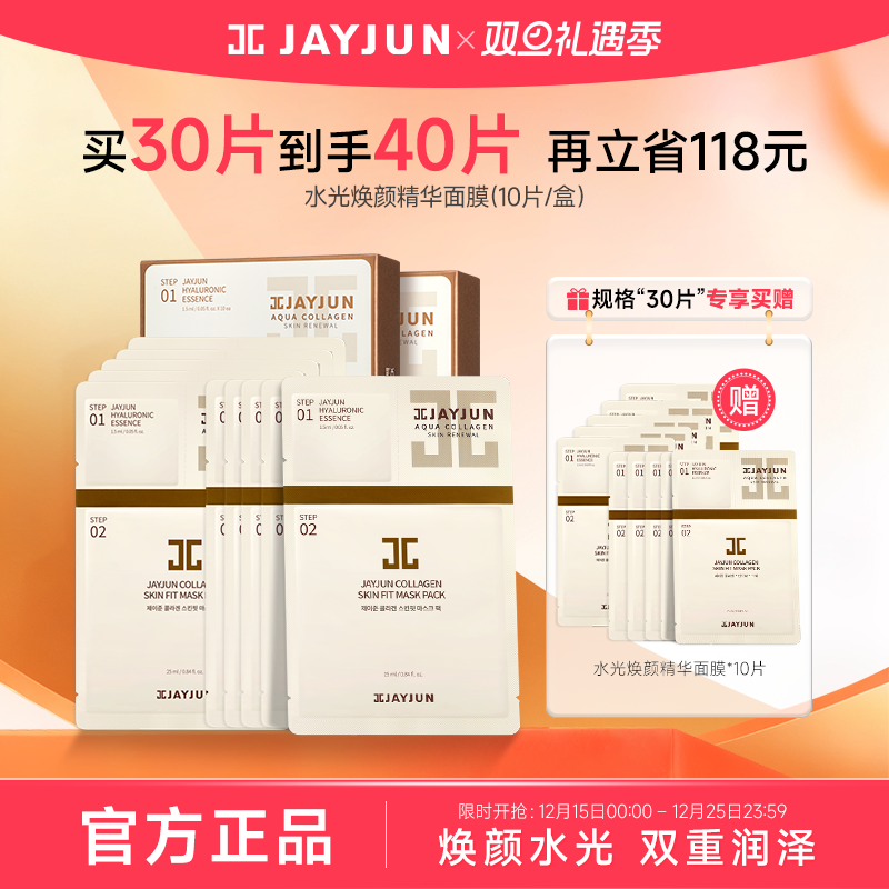 【自营】JAYJUN捷俊水光焕颜面膜胶原蛋白补水保湿深层清洁女30片