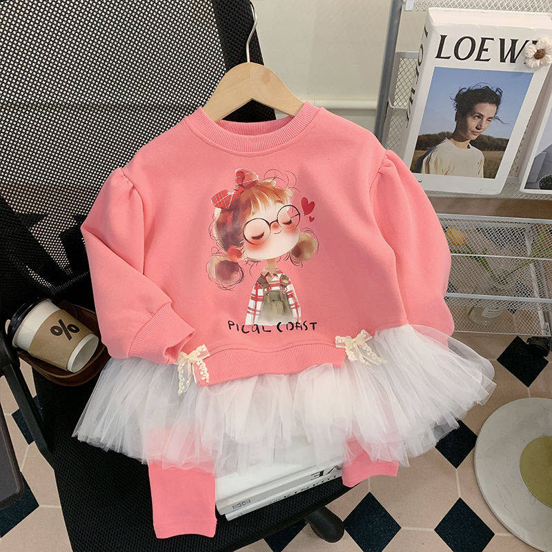 女童卫衣裙春装新款洋气儿童网纱连衣裙宝宝春秋季韩版打底衫上衣