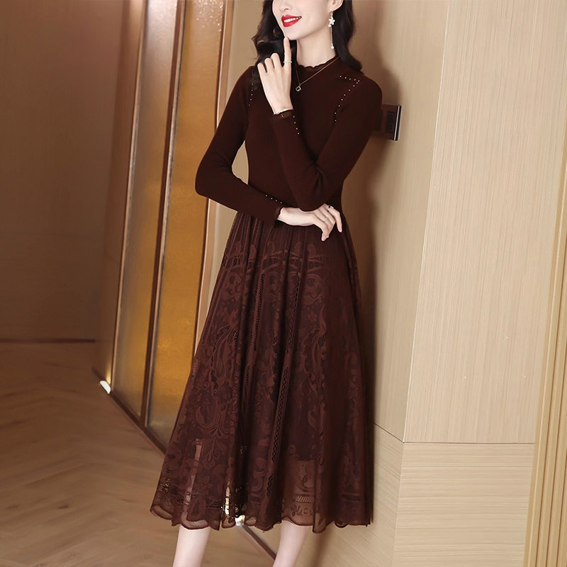 2026春装新款针织长袖连衣裙女洋气妈妈显瘦打底裙配大衣内搭长裙