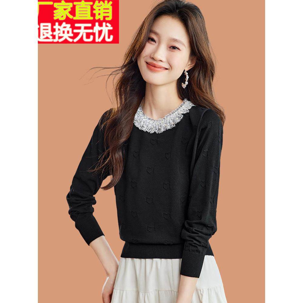 黑色蕾丝打底衫女2025新款春装桑蚕丝针织衫小香风上衣配裙子T恤