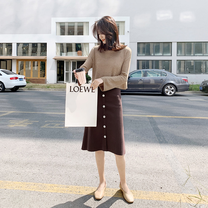 春装2024年新款女装洋气修身法式气质打底半身裙两件套针织套装裙