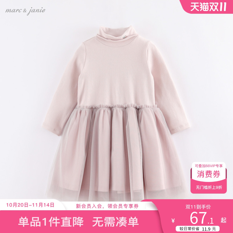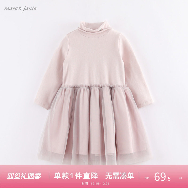 【打折】马克珍妮女童半高领针织连衣裙春装宝宝打底裙裙子212810