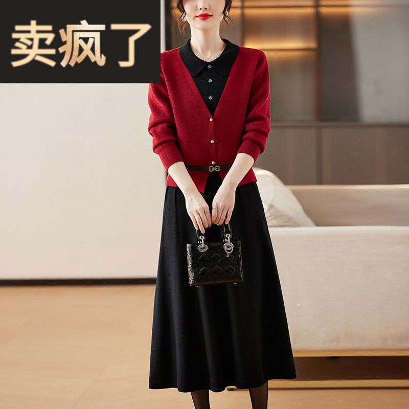 妈妈春装针织衫洋派打底衫两件套2025新款中老年女春秋打底毛衣裙