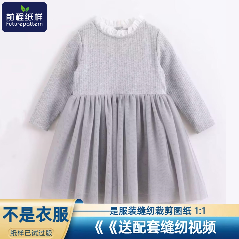前程纸样女童春装连衣裙花边领网纱裙宝宝打底裙服装裁剪图纸514