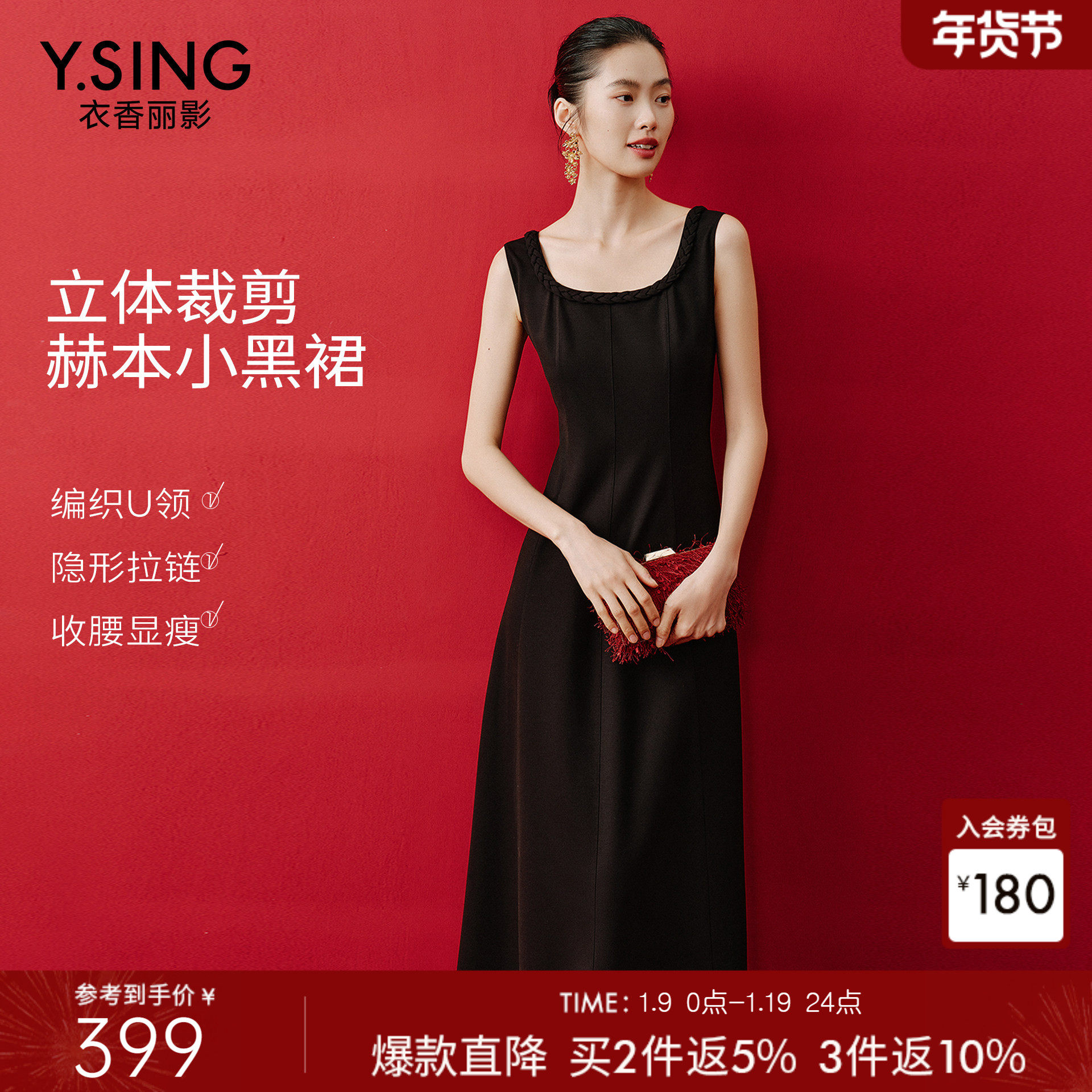 衣香丽影法式黑色针织连衣裙女2026春装新款收腰显瘦打底背心裙子