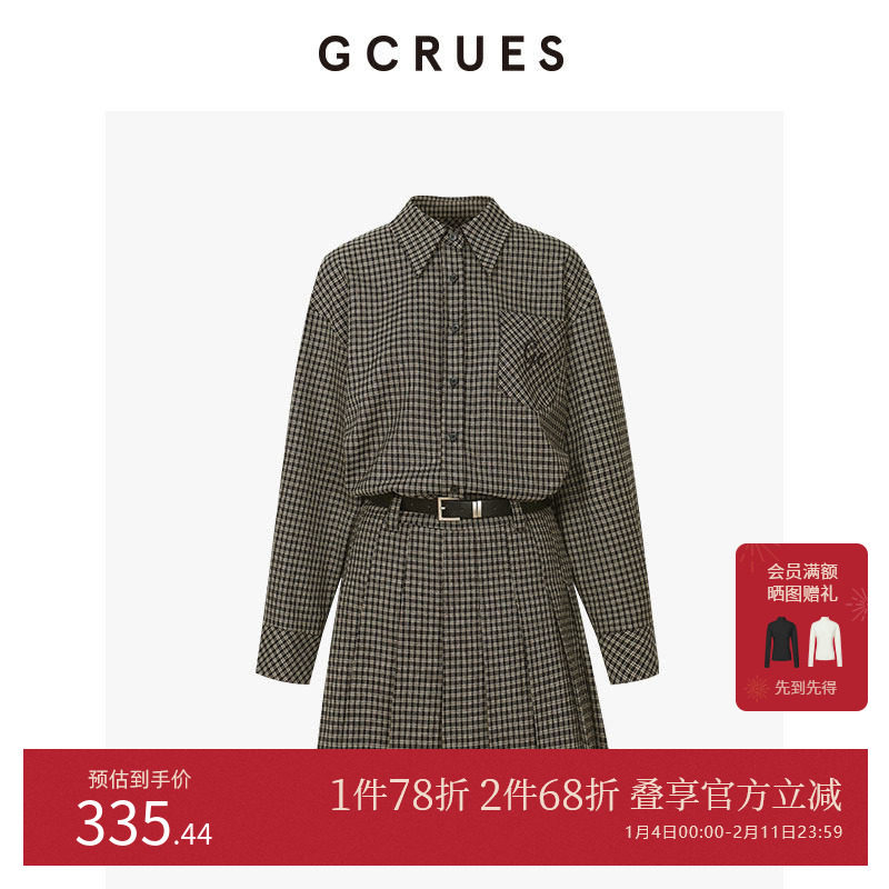 GCRUES商场同款时尚格子套装裙女春季气质衬衫两件套 G12C13A0462