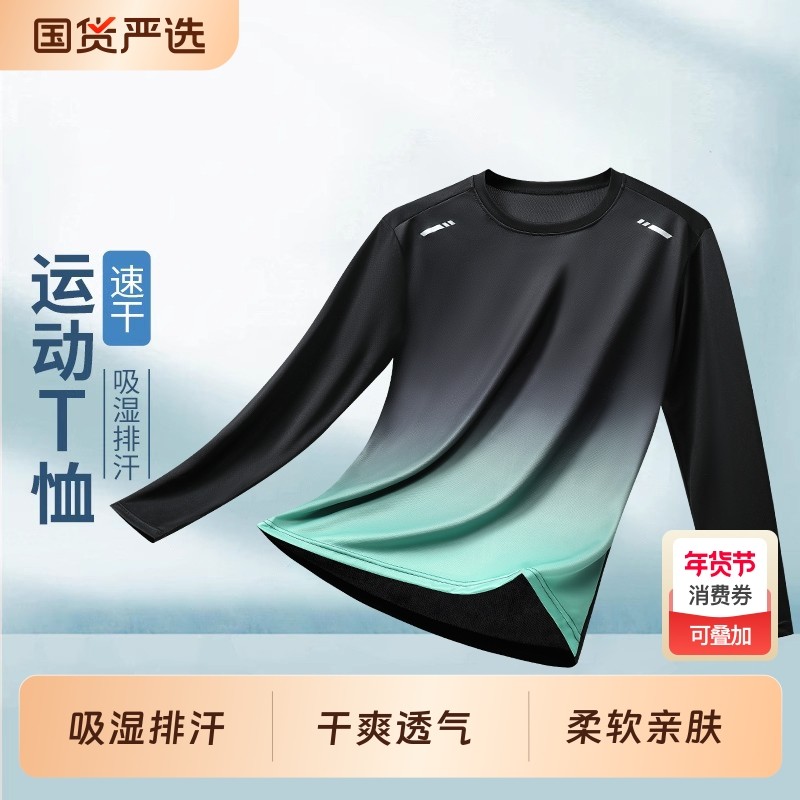 运动长袖t恤男T宽松薄款速干衣健身训练羽毛球服跑步上衣透气长款