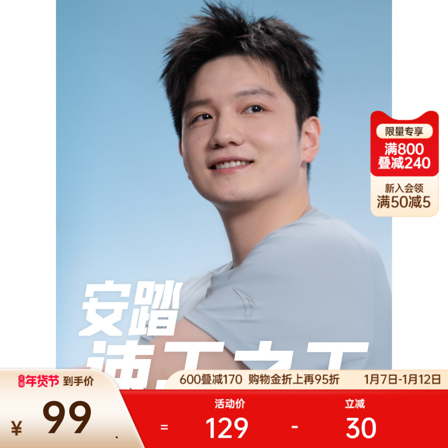 安踏红色短袖男t恤2026夏季新款宽松透气冰丝速干健身服官网旗舰