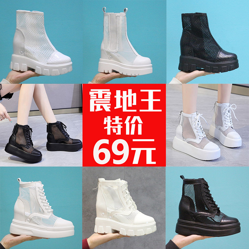 震地王镂空马丁靴女厚底短靴夏真皮内增高网纱凉靴网面透气潮特价