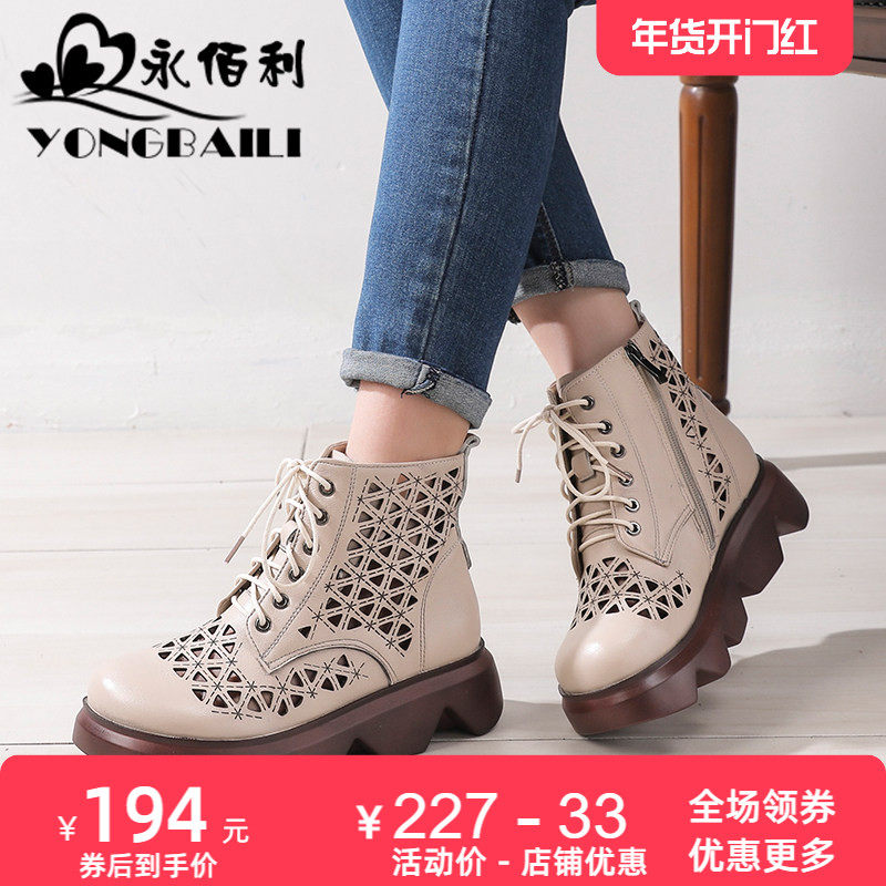 真皮网面厚底凉鞋靴防水台软底马丁靴女新款夏季薄款镂空透气粗跟