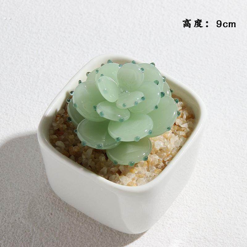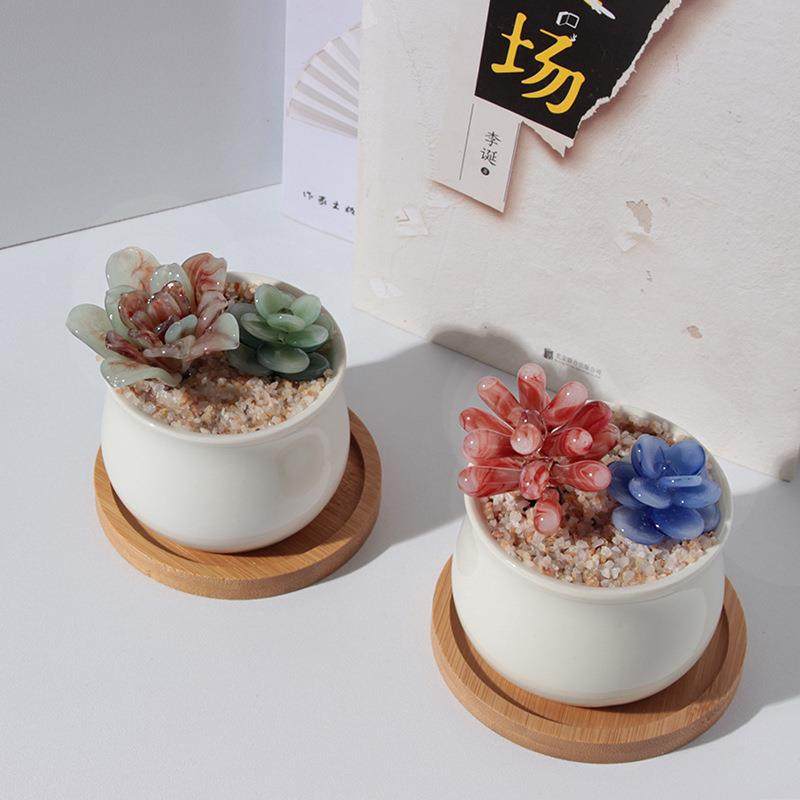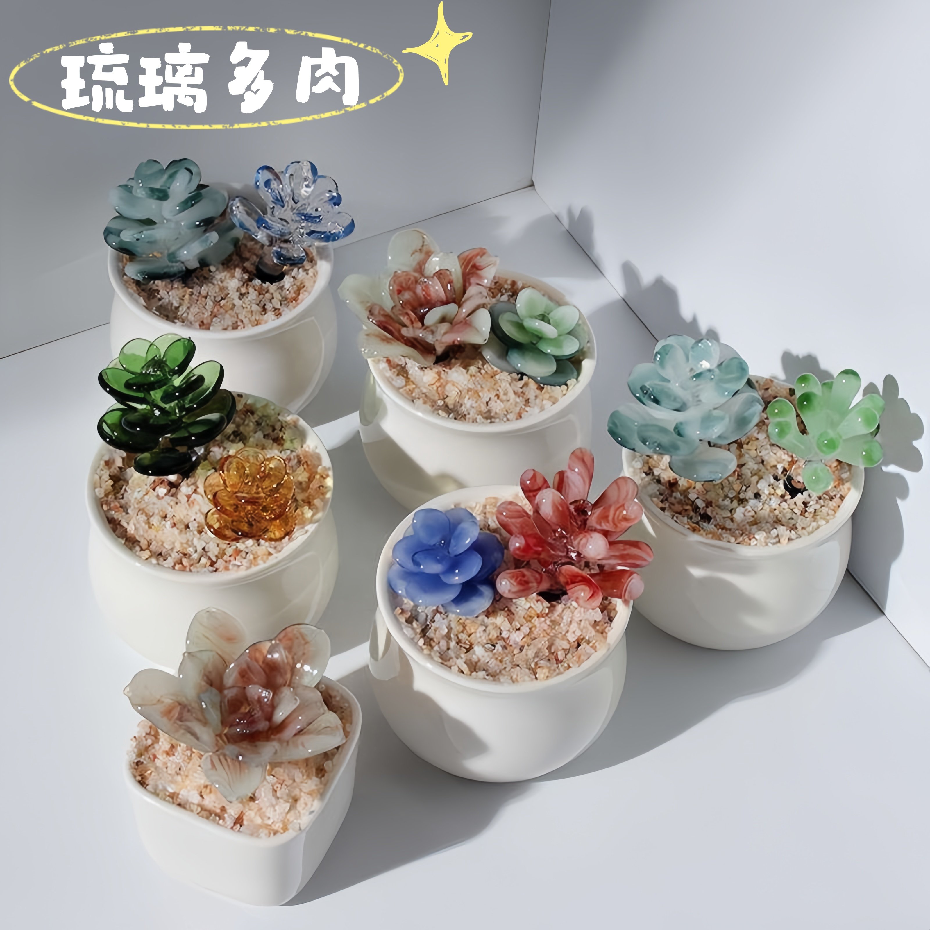 淄博琉璃工位小摆件多肉盆栽玻璃植物工艺品家居客厅桌面生日礼物