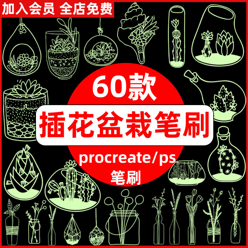 玻璃瓶罐插花多肉植物盆栽玻璃缸花瓶花艺盆景procreate+ps笔刷