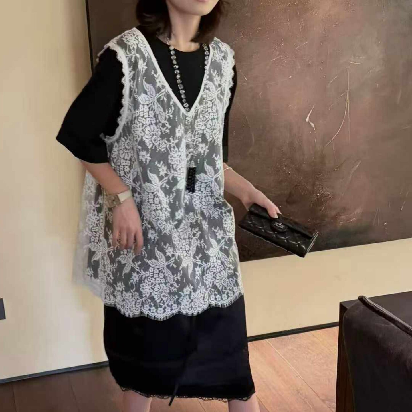 - 黑色网纱打底衫女