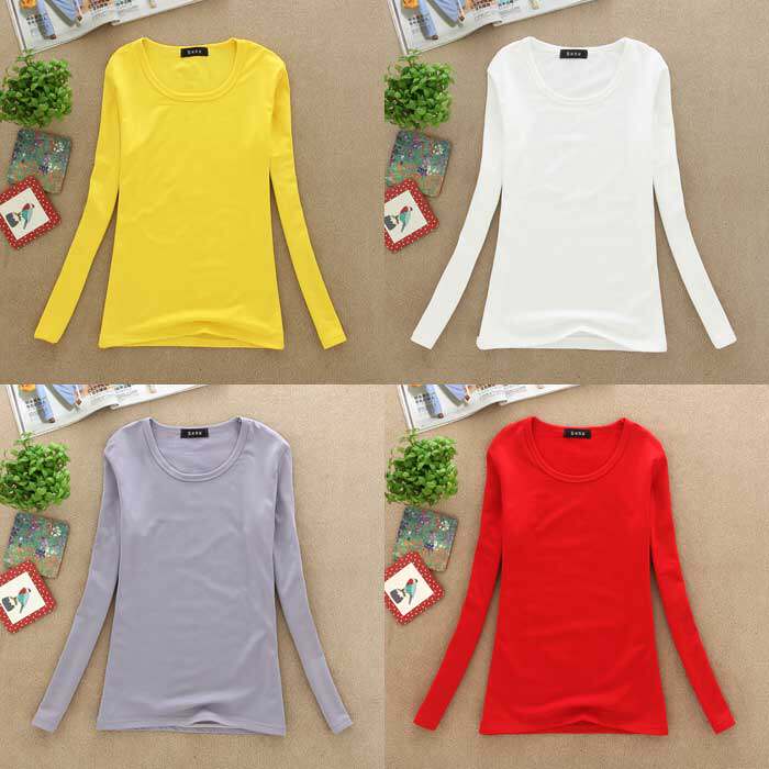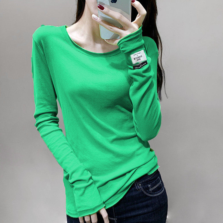 糖果色 女士基础款纯棉T恤衫 圆领长袖打底 百搭上衣 春秋款女装