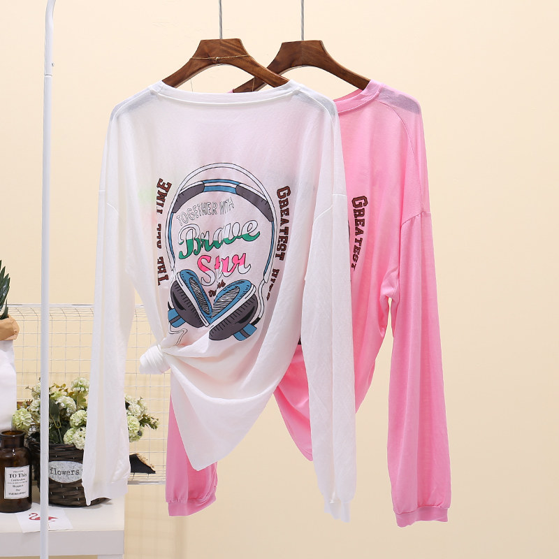 糖果色t恤防晒衫女长袖2021夏季新款韩版宽松罩衫薄款冰丝上衣潮
