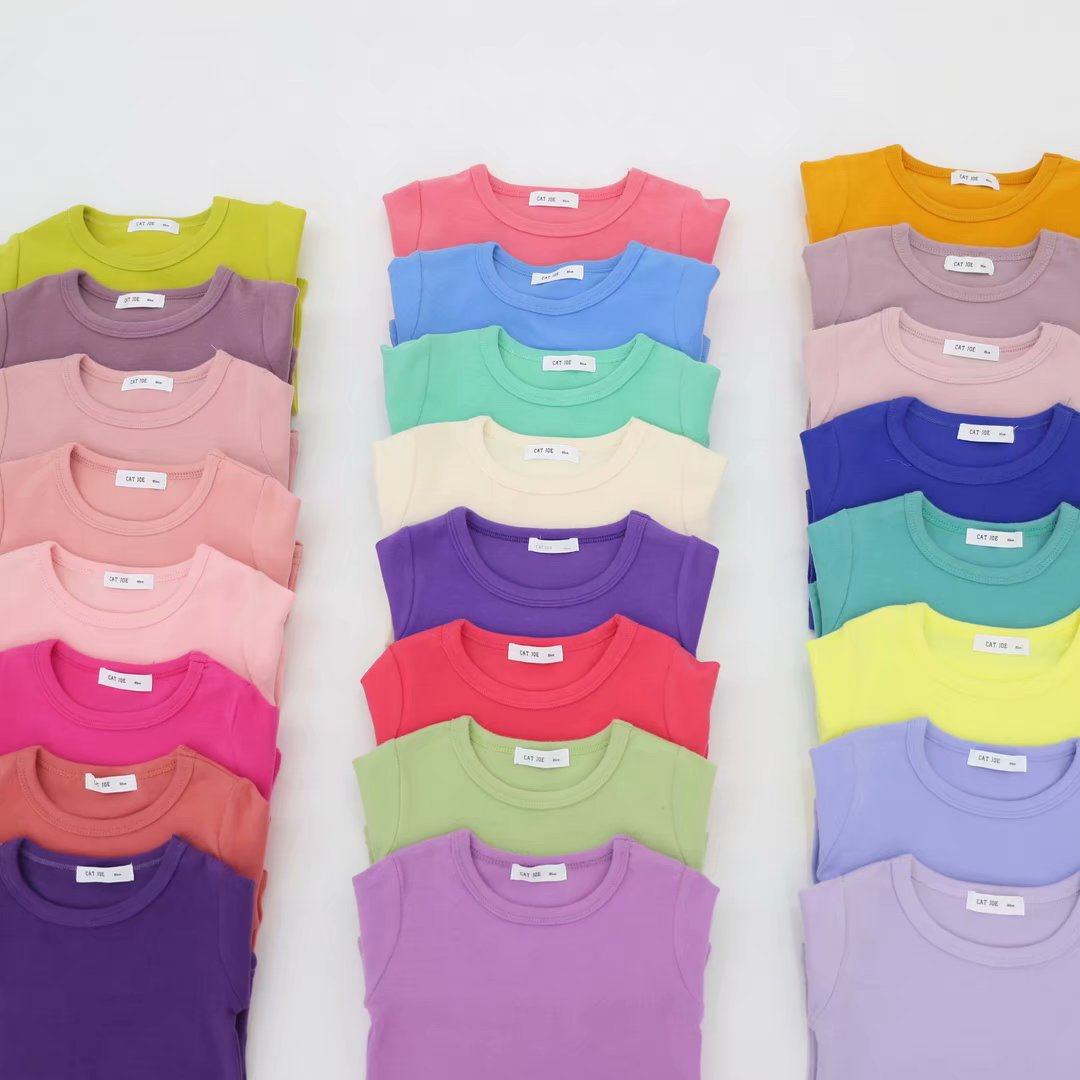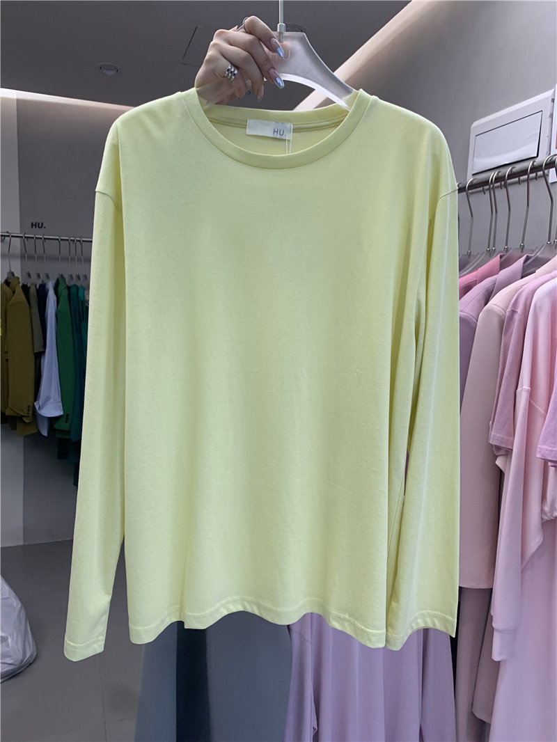 跑量款!纯棉夏季慵懒修身显瘦圆领加长袖糖果色T恤女套头打底衫