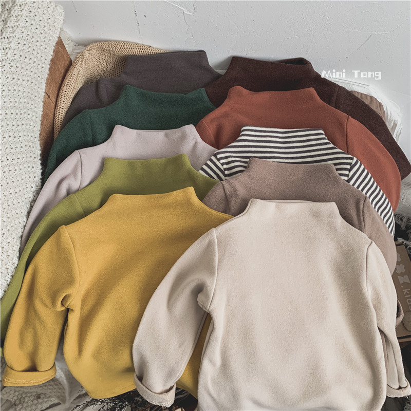 加绒打底衫女秋冬新款糖果色小衫韩版百搭保暖上衣长袖T恤 圆领