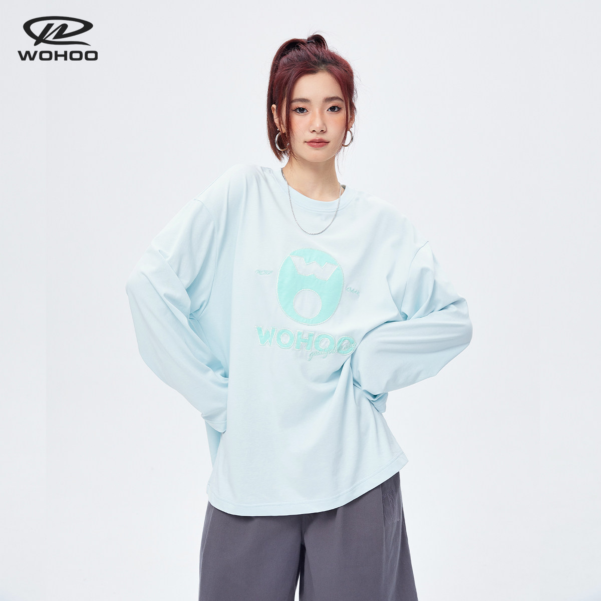 WOHOO糖果色系贴布绣大logo长袖街头多巴胺穿搭情侣打底衫T恤女