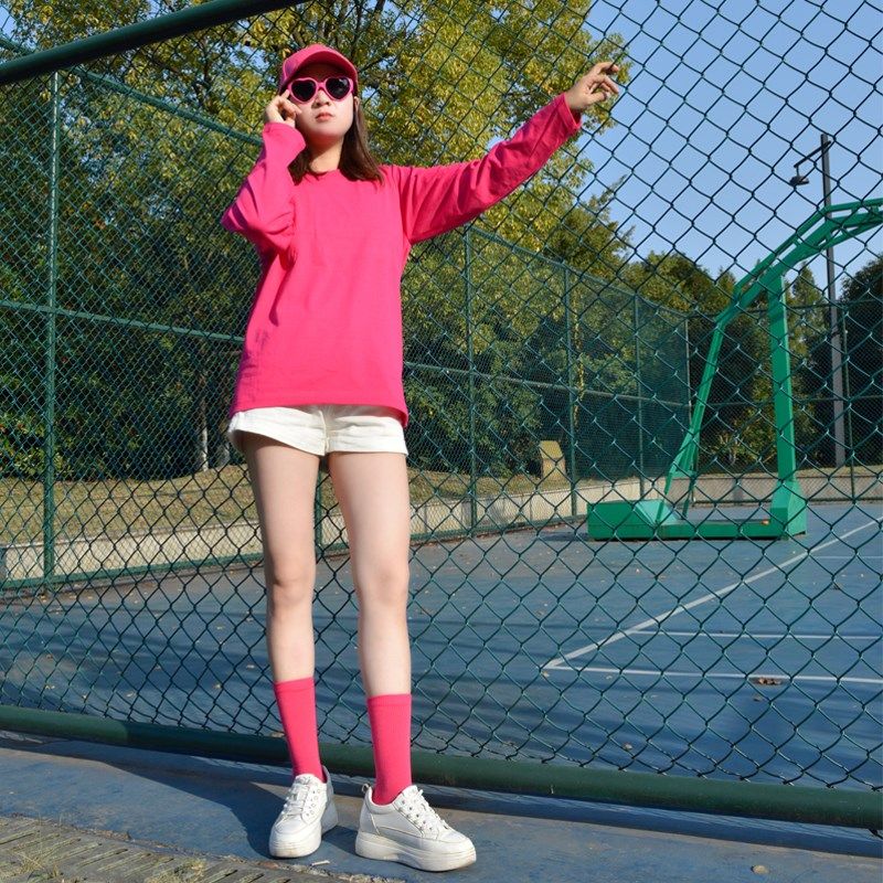 春秋彩色t恤长袖闺蜜装纯色糖果色纯棉打底衫百搭情侣男女活动装