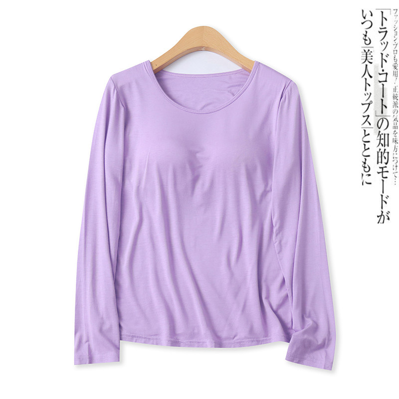 莫代尔打底衫春新款外贸女装糖果色一体海绵胸垫修身长袖T恤17721