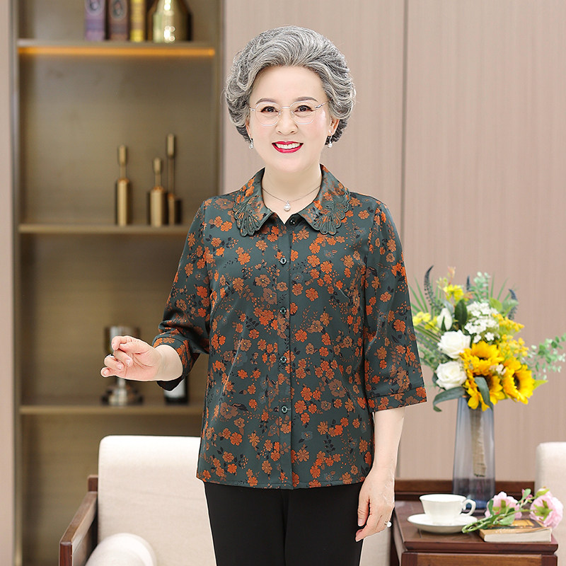 极速奶奶夏装七分袖衬衫p中老年人上衣春秋女妈妈60岁70岁宽松老