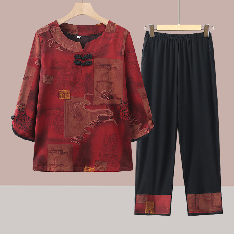妈妈装夏装七分袖T恤中老年女装夏季套装奶奶衣服老太太两件套装