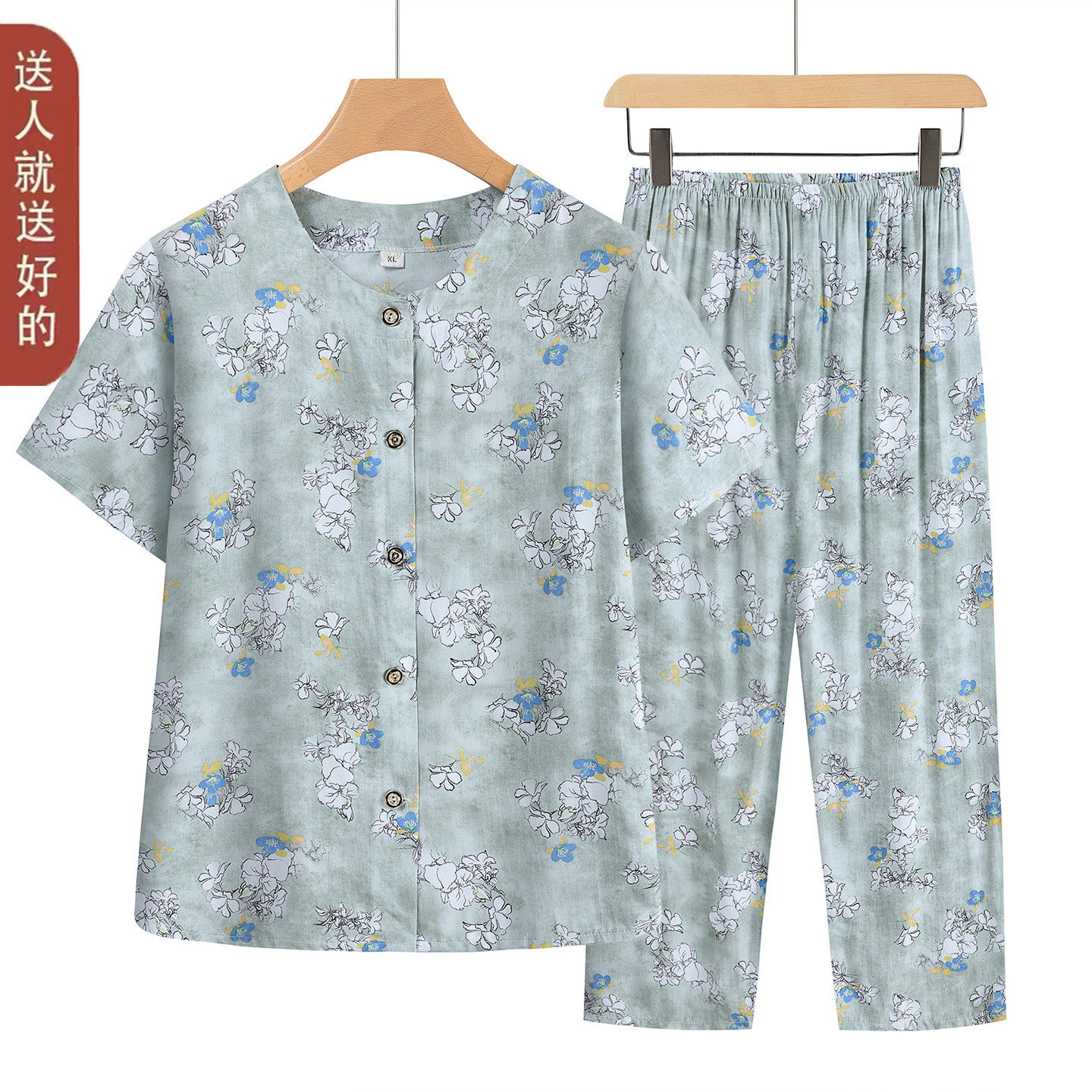 奶奶夏装短袖套装60老年人七分裤女70岁妈妈纯棉绸太太老人睡衣服