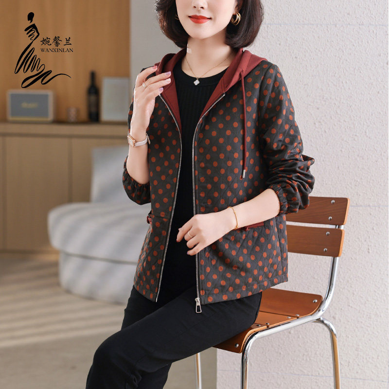 2025新款中年妈妈春装洋气薄款外套大码中老年女春秋连帽夹克风衣