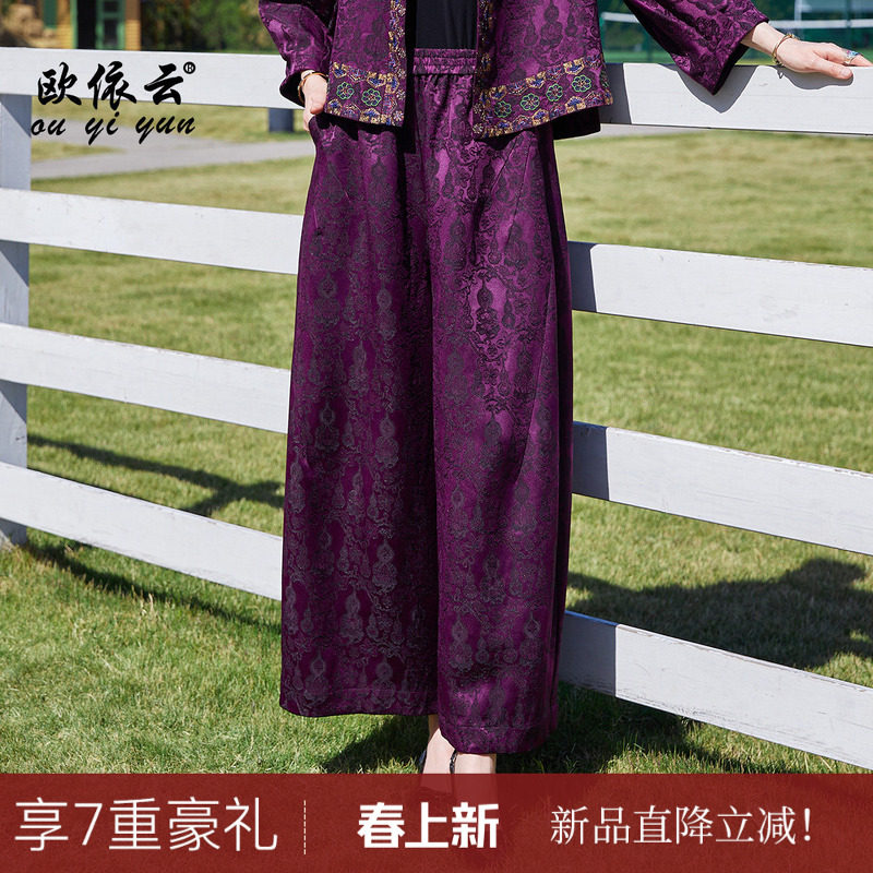 欧依云时尚大码女裤休闲宽松洋气中年妈妈阔腿裤显瘦春装2026新款