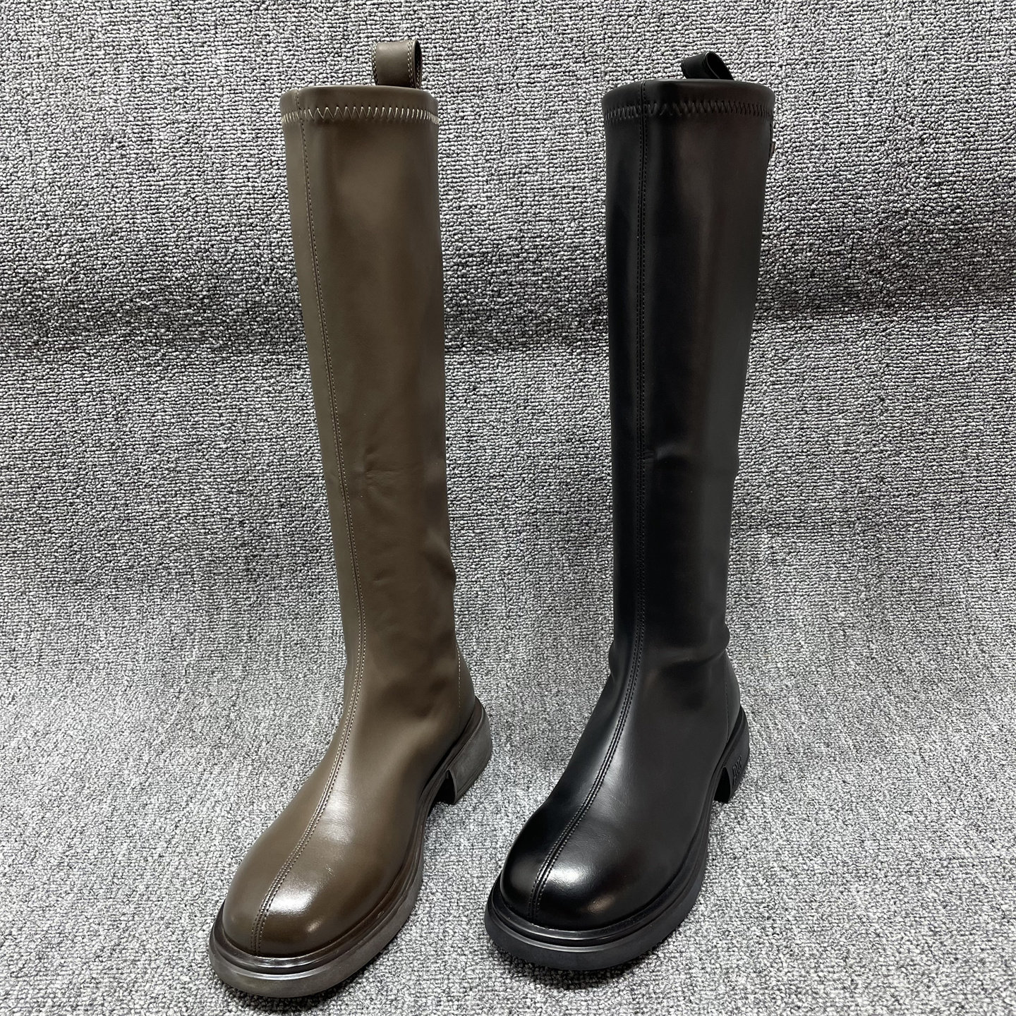 骑士靴女2025秋冬新款网红方头瘦瘦女靴子长靴不过膝平底高筒靴女