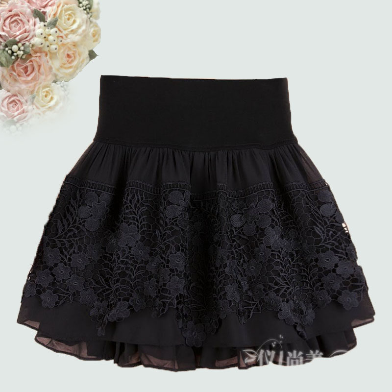 女蕾丝短裙春秋蓬蓬裙子雪纺半裙打底a字裙裤裙高腰防走光半身裙