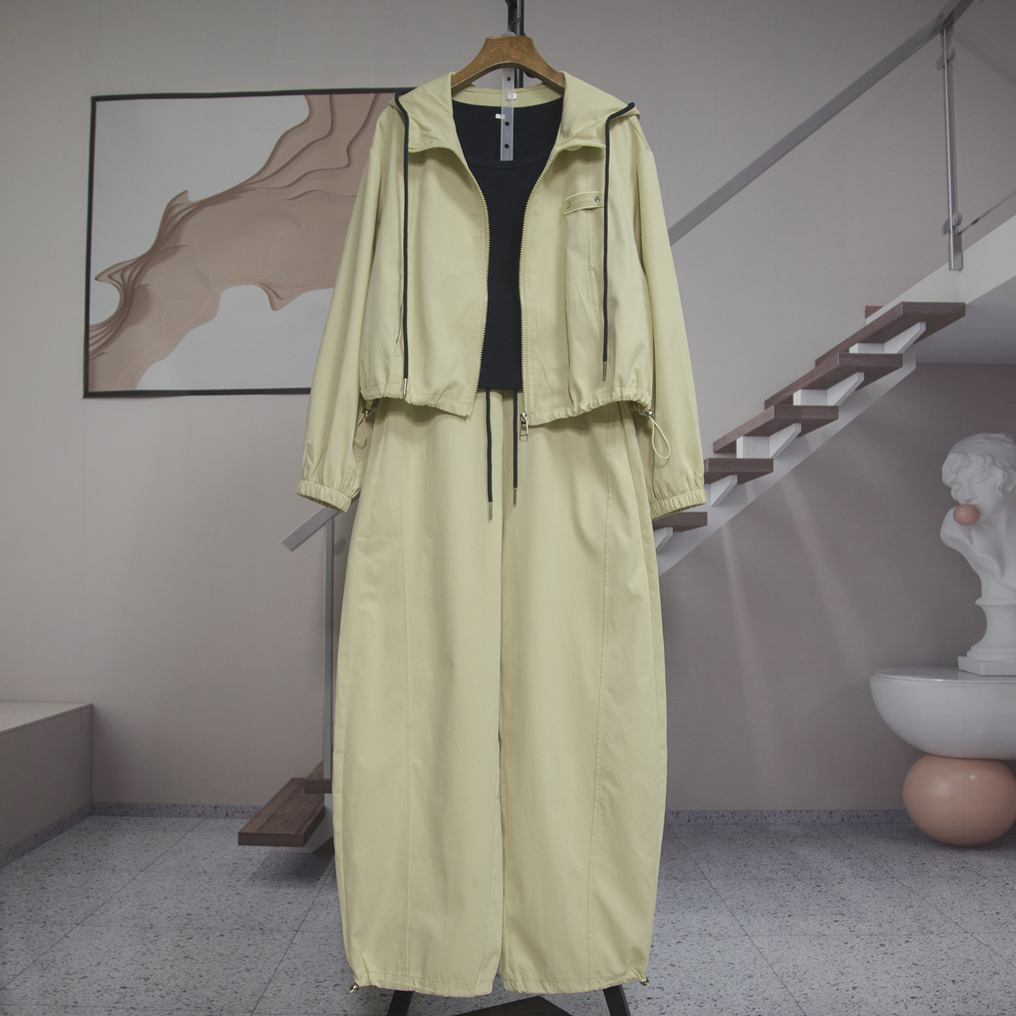 工装风连帽外套带背心阔腿裤套装女2026春季显瘦休闲三件套潮7613