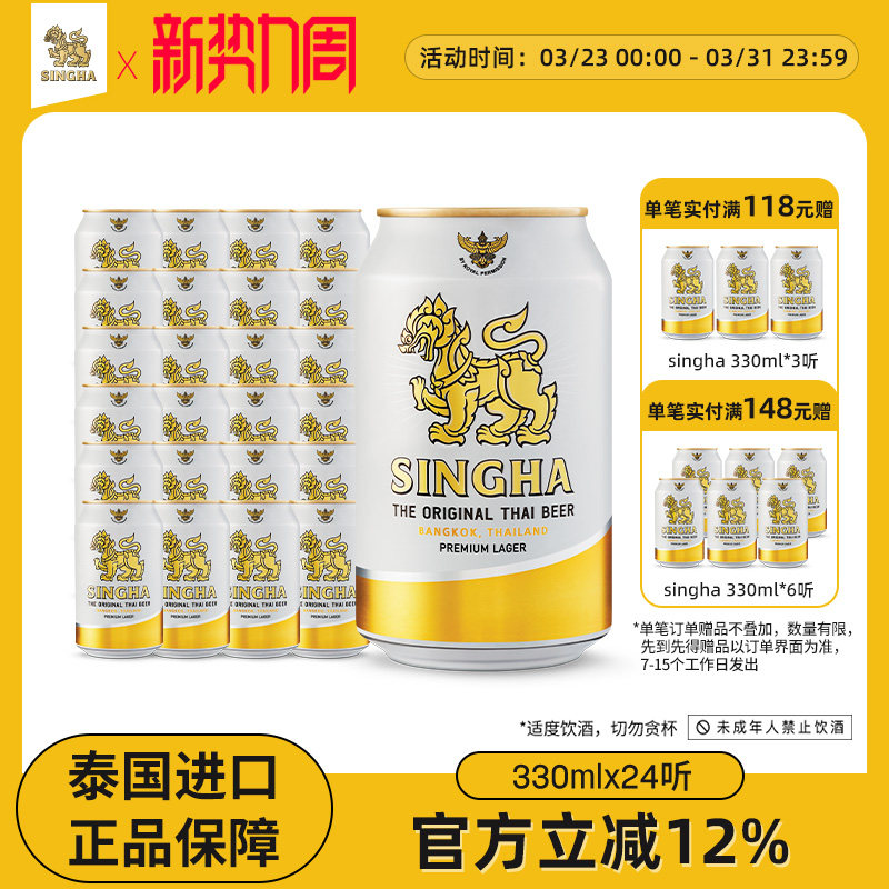 泰国啤酒 SINGHA伟狮拉格啤酒330ml*24听装 泰国原装进口正品保证
