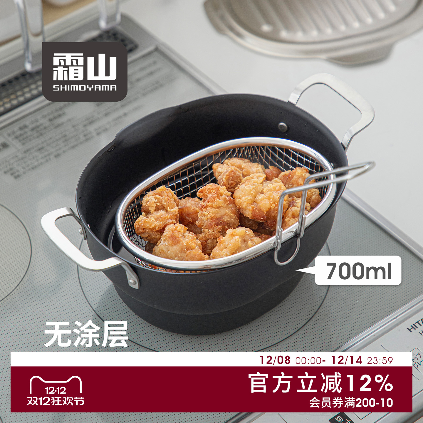 霜山椭圆炸锅窒化铁省油深型防溅油日式天妇罗带盖带滤网油炸小锅
