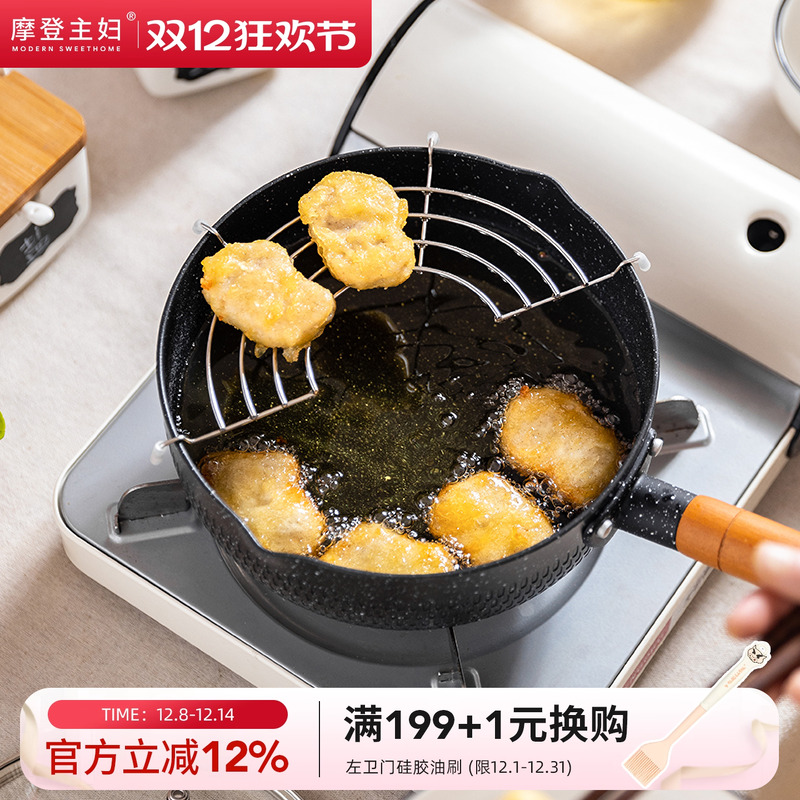 摩登主妇日式天妇罗油炸锅煎锅不粘锅省油专用家用小油炸锅平底锅