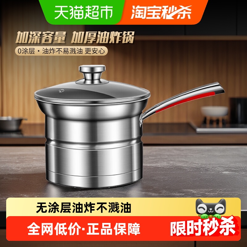 304不锈钢油炸锅家用多功能一体炸串锅宝宝专用辅食锅小奶锅婴儿